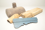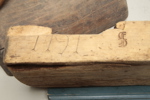 Trätratt: (B= 33cm)Träskål: (L= 45cm) (B= 15cm)TräslevSolvstock, 1800-tal med initialer: (L= 33cm)