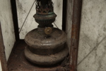 Oljebrännare. Plåt/Glas. H= 44cm Mått= 15x15cm