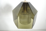 Gröntonat glas i hexagonal form. Invändigt pressglas i klarglas med rutmönster i relief. H= 43cm Dia= 25cm