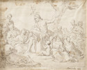 Figurscen, tusch, bär påskrift, bladmått 16x21 cm