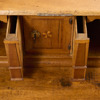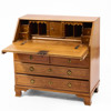 Fanerat i lövträ med intarsiadekor, beslag i mässing, invändigt med lådinredning, och lönnfack, höjd 103, 53 x 105 cm