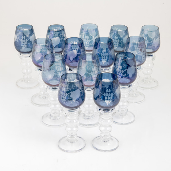Kupa i blå glasmassa med slipad dekor, höjd 20 cm