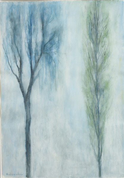 "Sommar vid havet", signerad Heleander, gouache, bildmått 90 x 63 cm