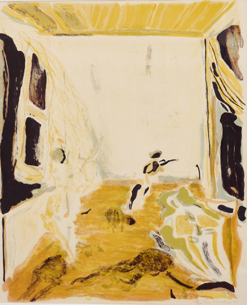 "Triangeldrama", signerad och daterad -71, färglitografi, numrerad 28/60, bildmått 60 x 49 cm