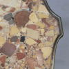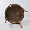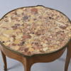 1900-talets första hälft, skiva i terrazzo, fanérad med lövträ, beslag och list i mässing, etikettmärkt undertill NK, numrerad 5273 208, höjd 55, diameter 60 cm
