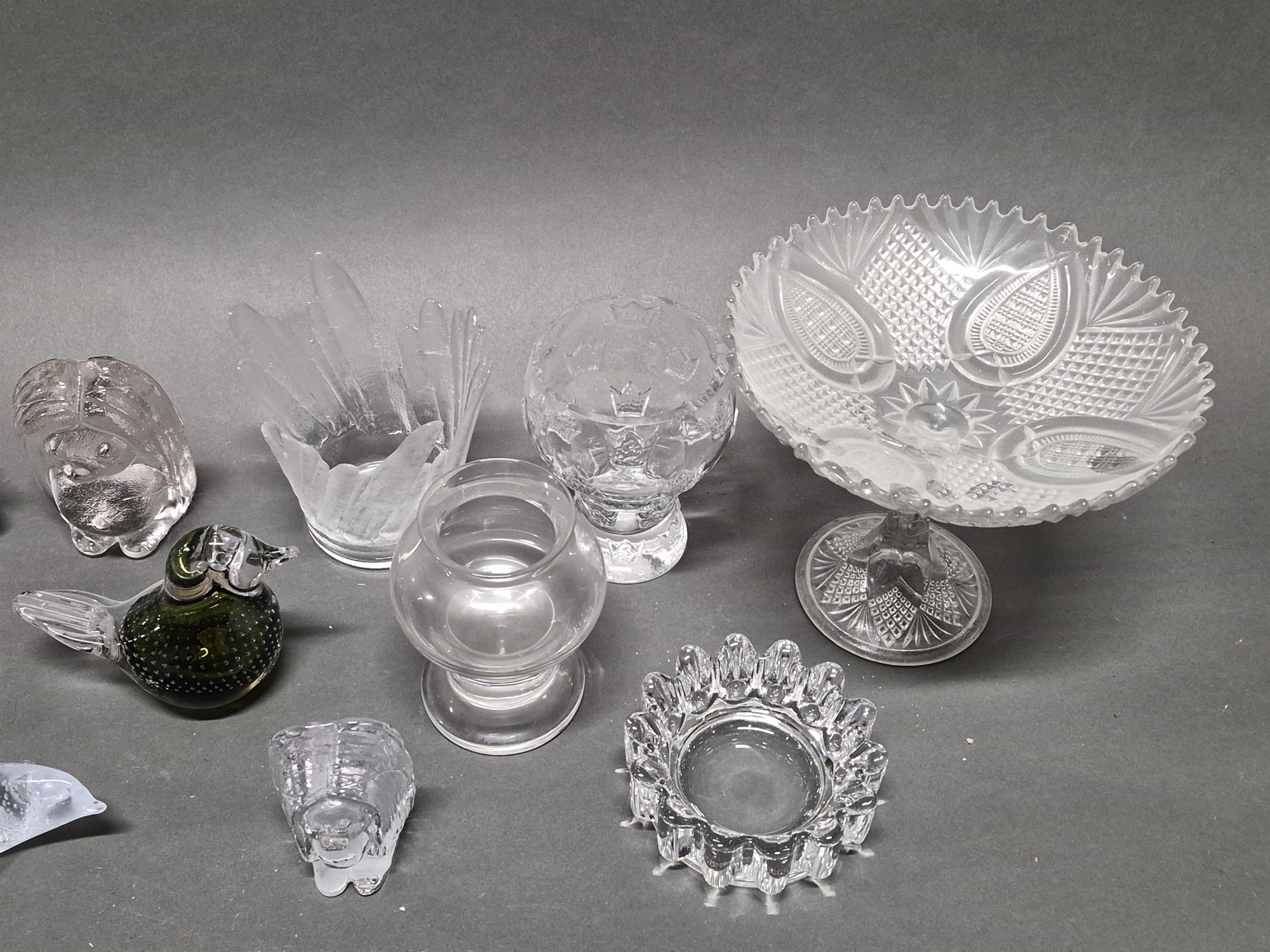 Parti glas bl.a skål på fot & glastroll, högsta 21 cm