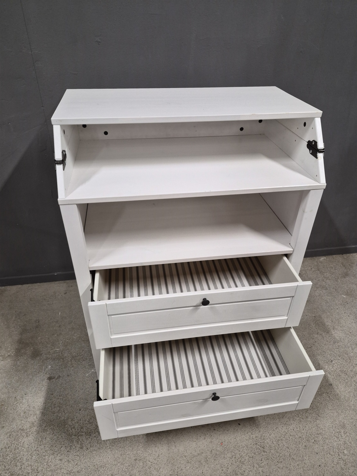Bilder Skötbord/byrå IKEA Sundvik, 2 lådor, vikbar klaff, höjd 108 cm, längd 78 cm, bredd 50-87 cm