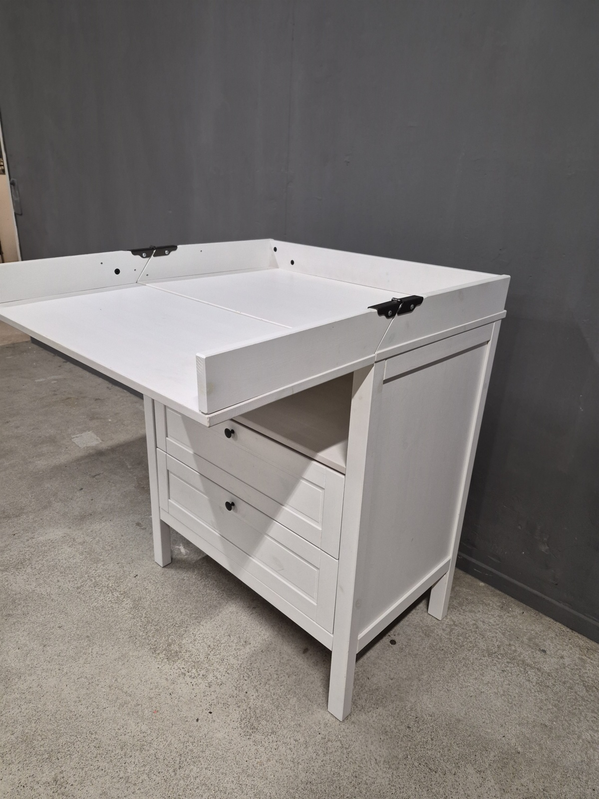 Skötbord/byrå IKEA Sundvik, 2 lådor, vikbar klaff, höjd 108 cm, längd 78 cm, bredd 50-87 cm