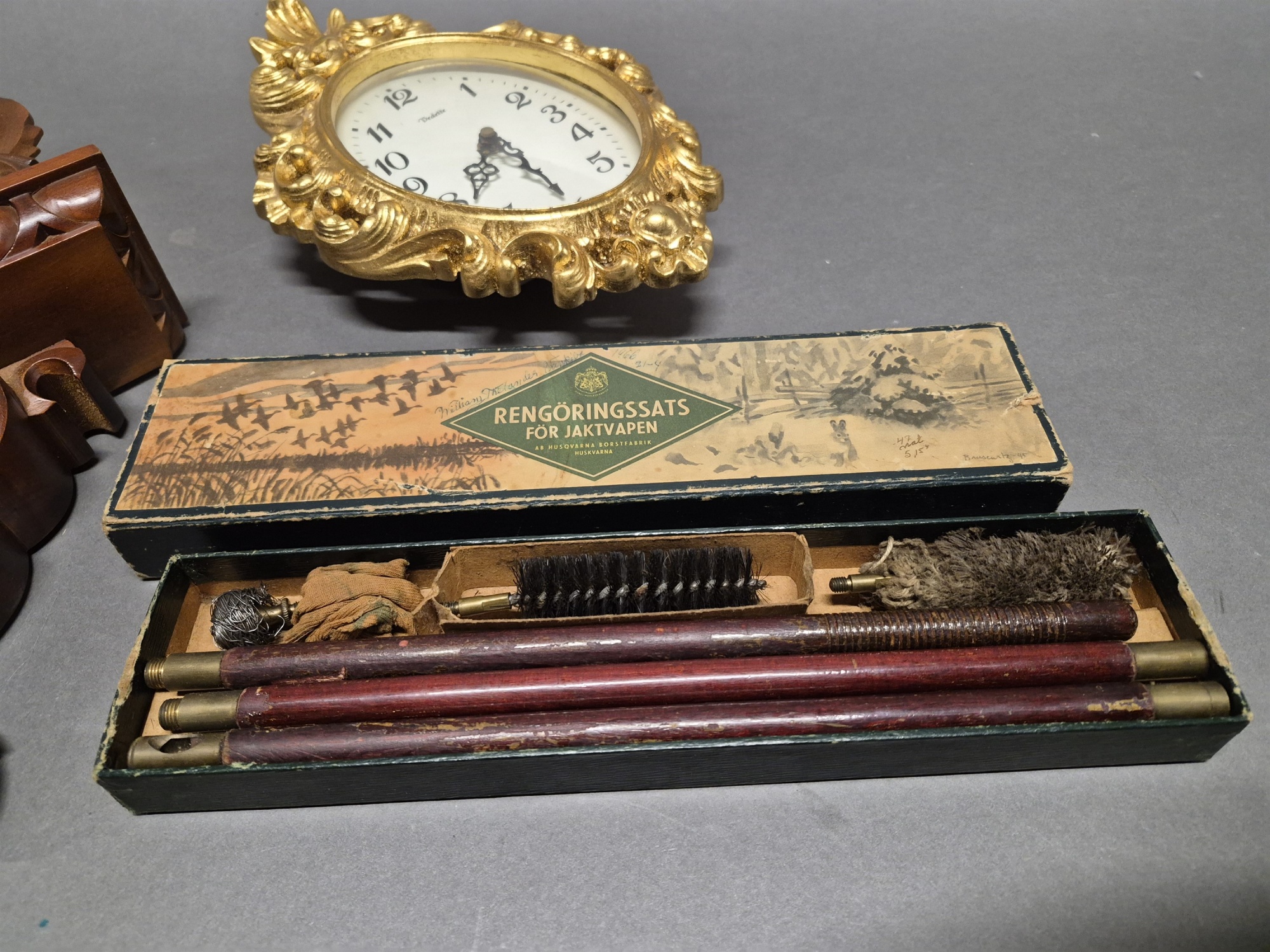 Bilder Väggur, klocka och rengöringssats för vapen, längsta mått 48 cm
