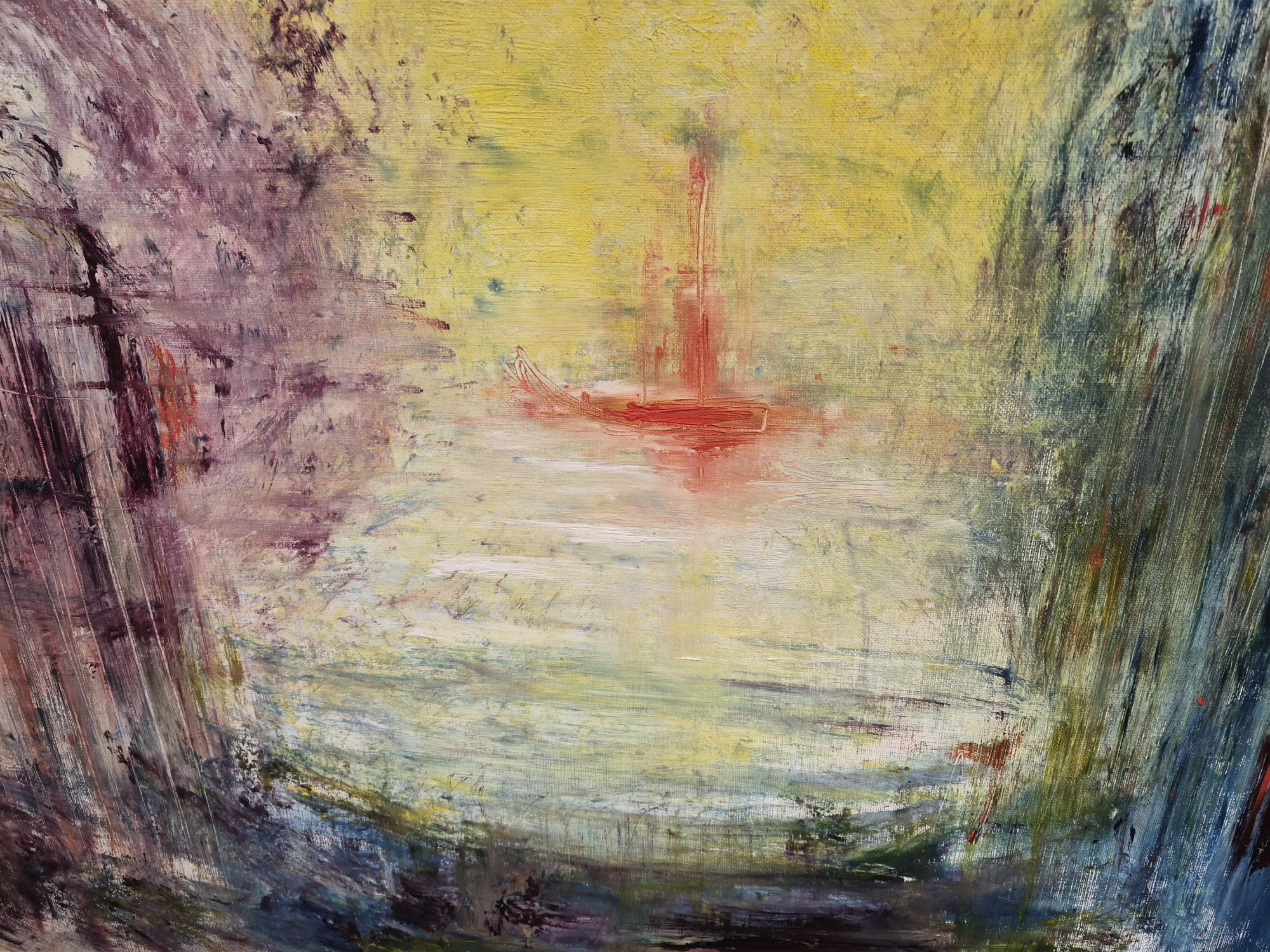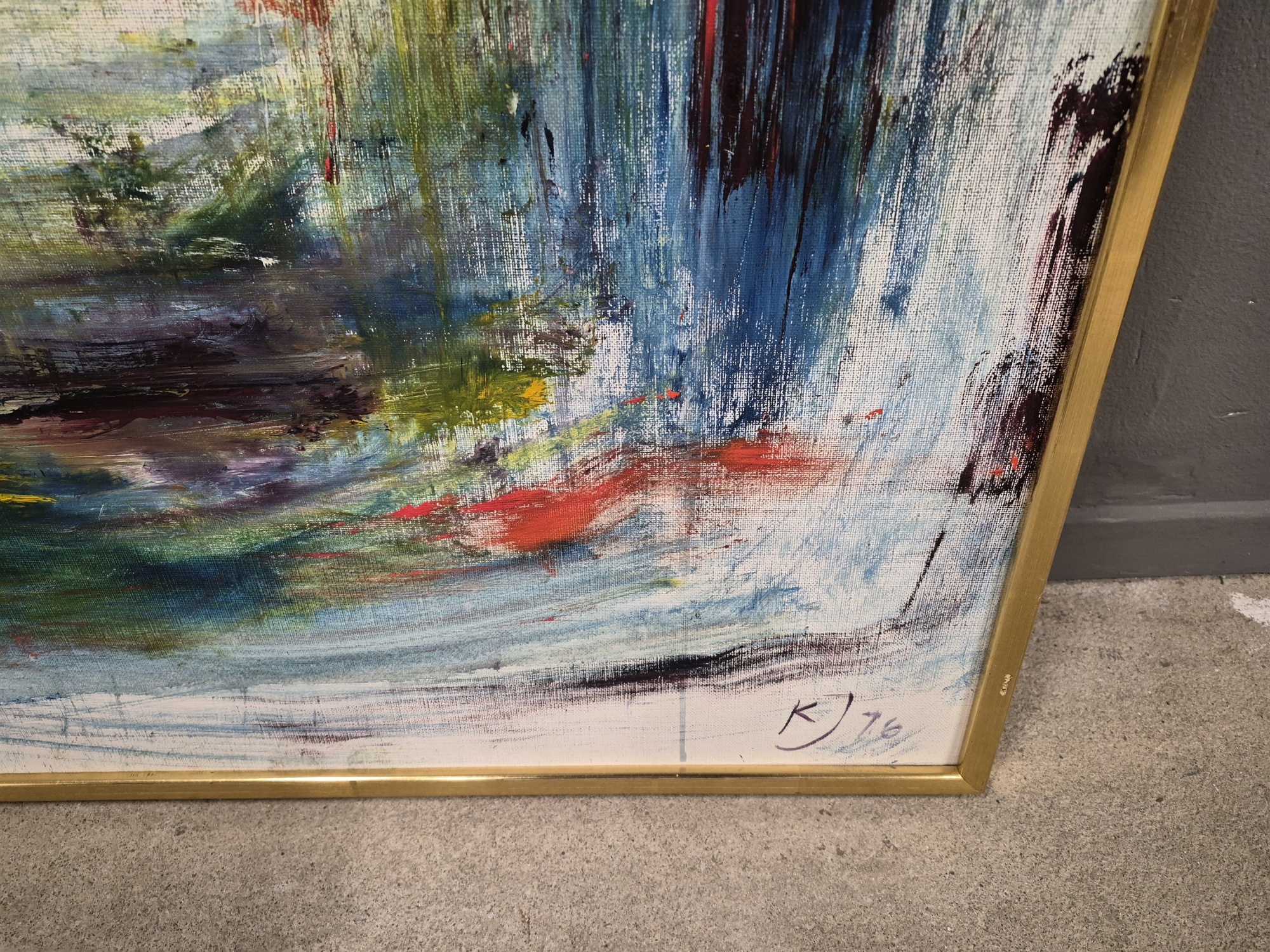 Bilder Monogramsignerad K.J 1976 olja på duk, "Segelbåt", mått 98 x 93 cm