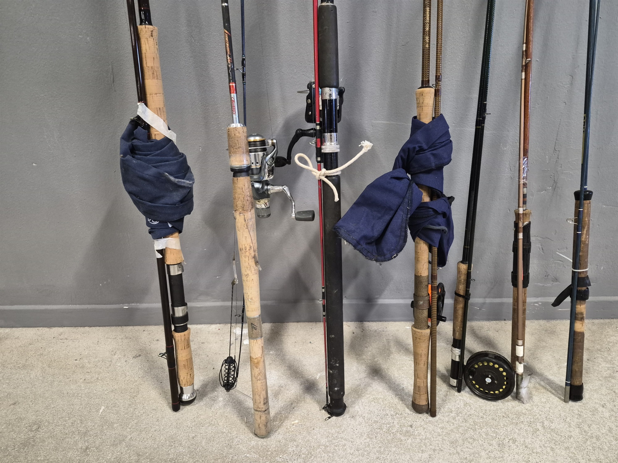 Fiskespön 7 st bla med fiskerullar, längsta mått på bild 150 cm