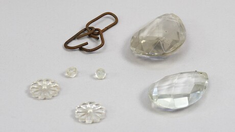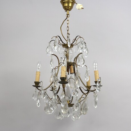 Bilder Ljuskrona, stomme i mässing, behängd med prismor, diameter 45 cm
