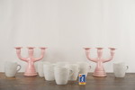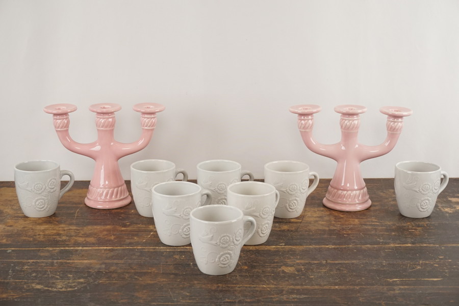Bilder 2st rosa Ljusstakar i porslin mm. G32/