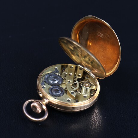 Bilder Fickur, guld i boetten, 14 K, diameter 33 mm, total vikt 28,3 gram