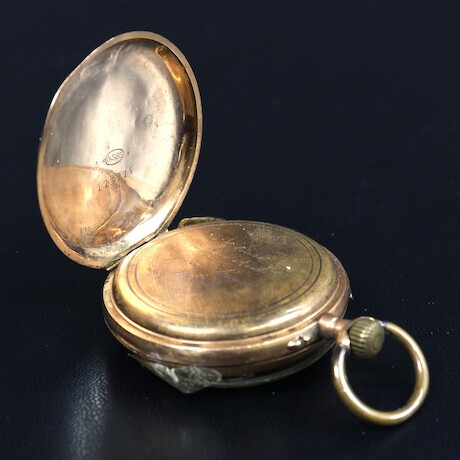 Bilder Fickur, guld i boetten, 14 K, diameter 46 mm, total vikt 67,3 gram