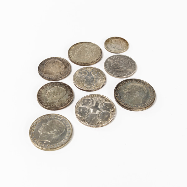 Bilder Mynt, silver, 9 st, vikt 142,4 gram