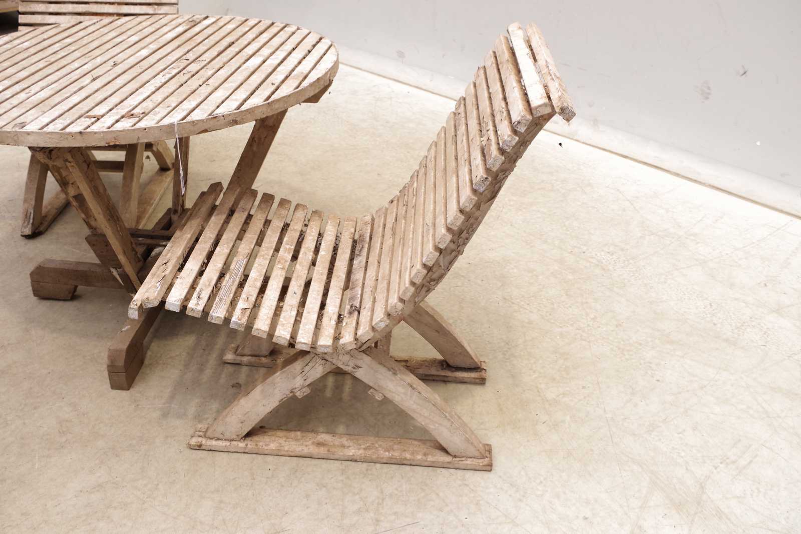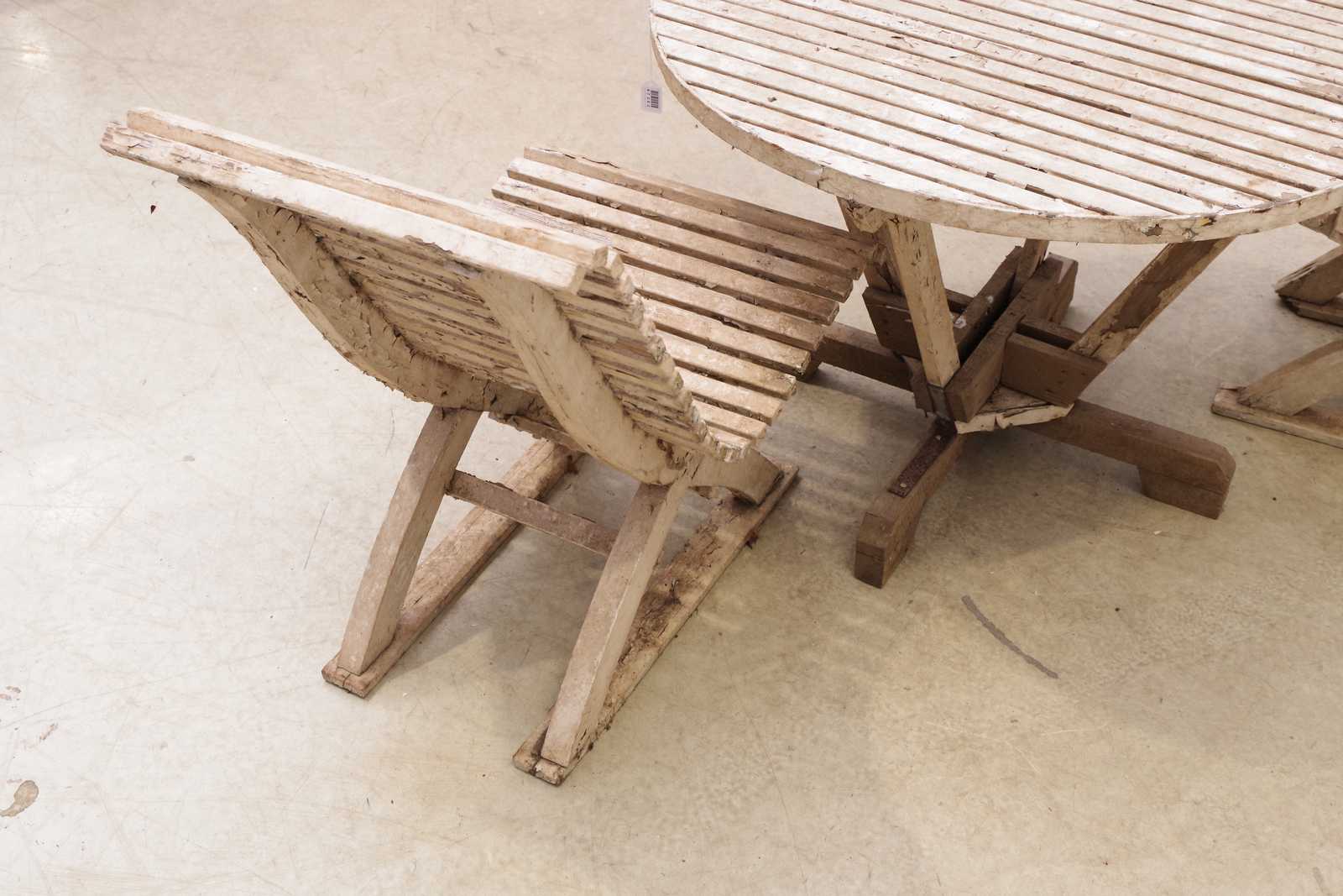 Bilder TRÄDGÅRDSGRUPP bord och stolar 2st, trä, äldre. H: 63cm Dia: 90cm. slitage, rangligt.
