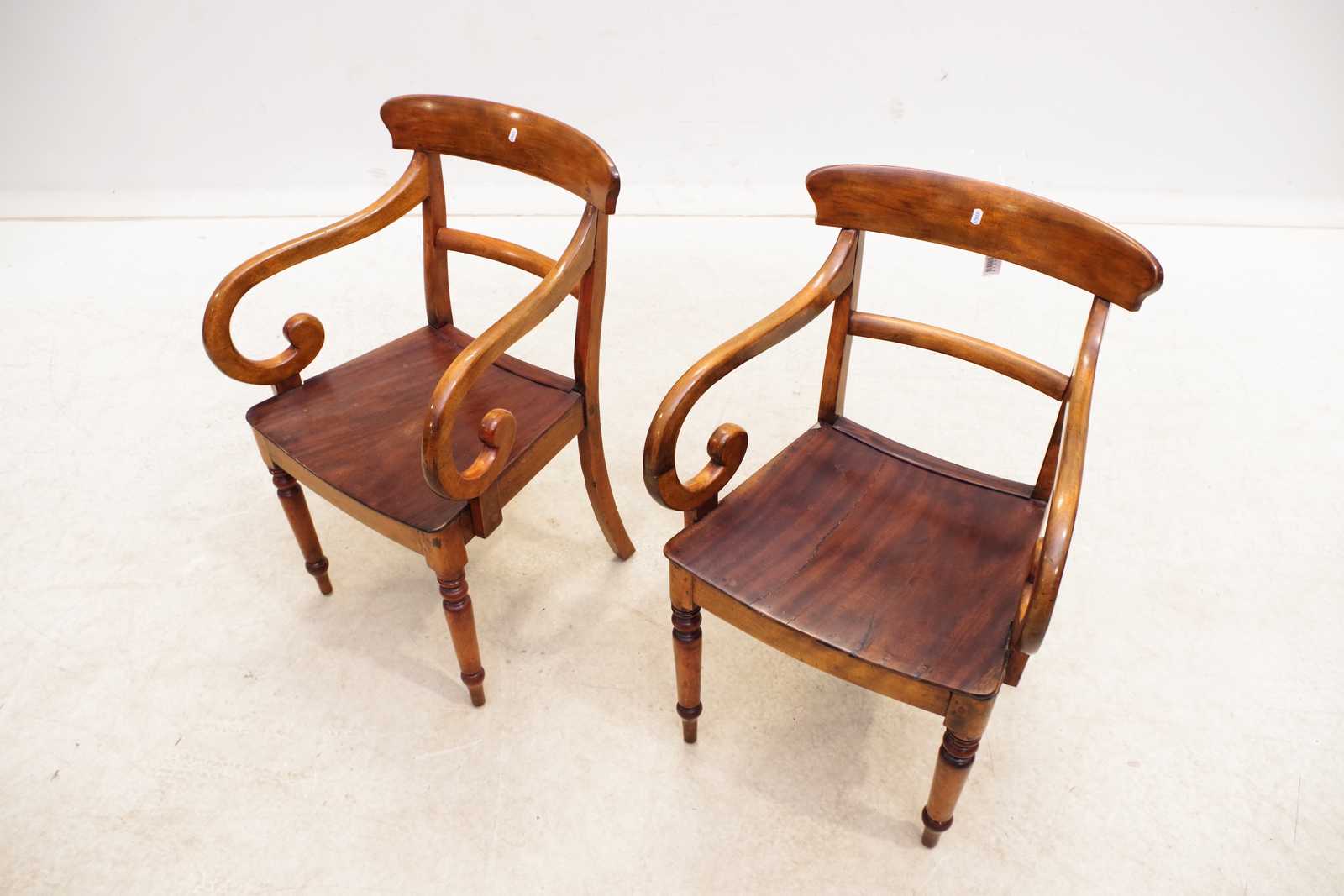 KARMSTOLAR ett par, Sitthöjd: 43cm. slitage, sprickor förekommer.