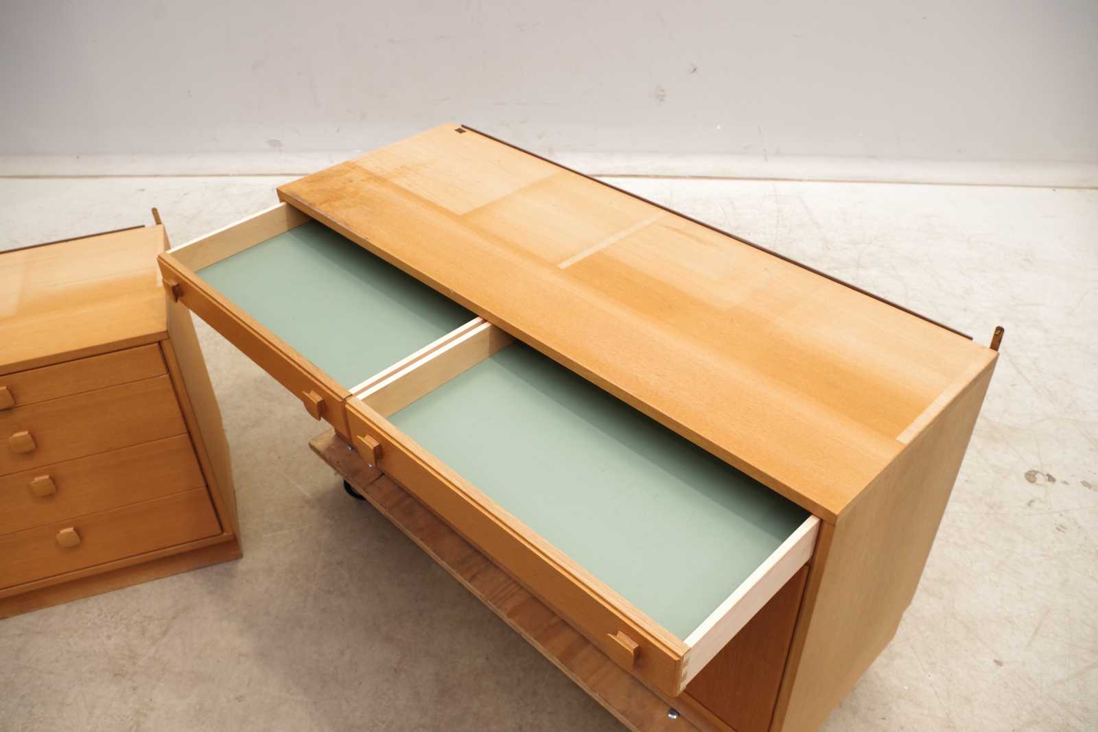 Auktioner SKÅP 2 delar, ek, Ulferts Tibro, 1900-talets andra hälft. H:64x 120x 43cm. bruksslitage, märken.