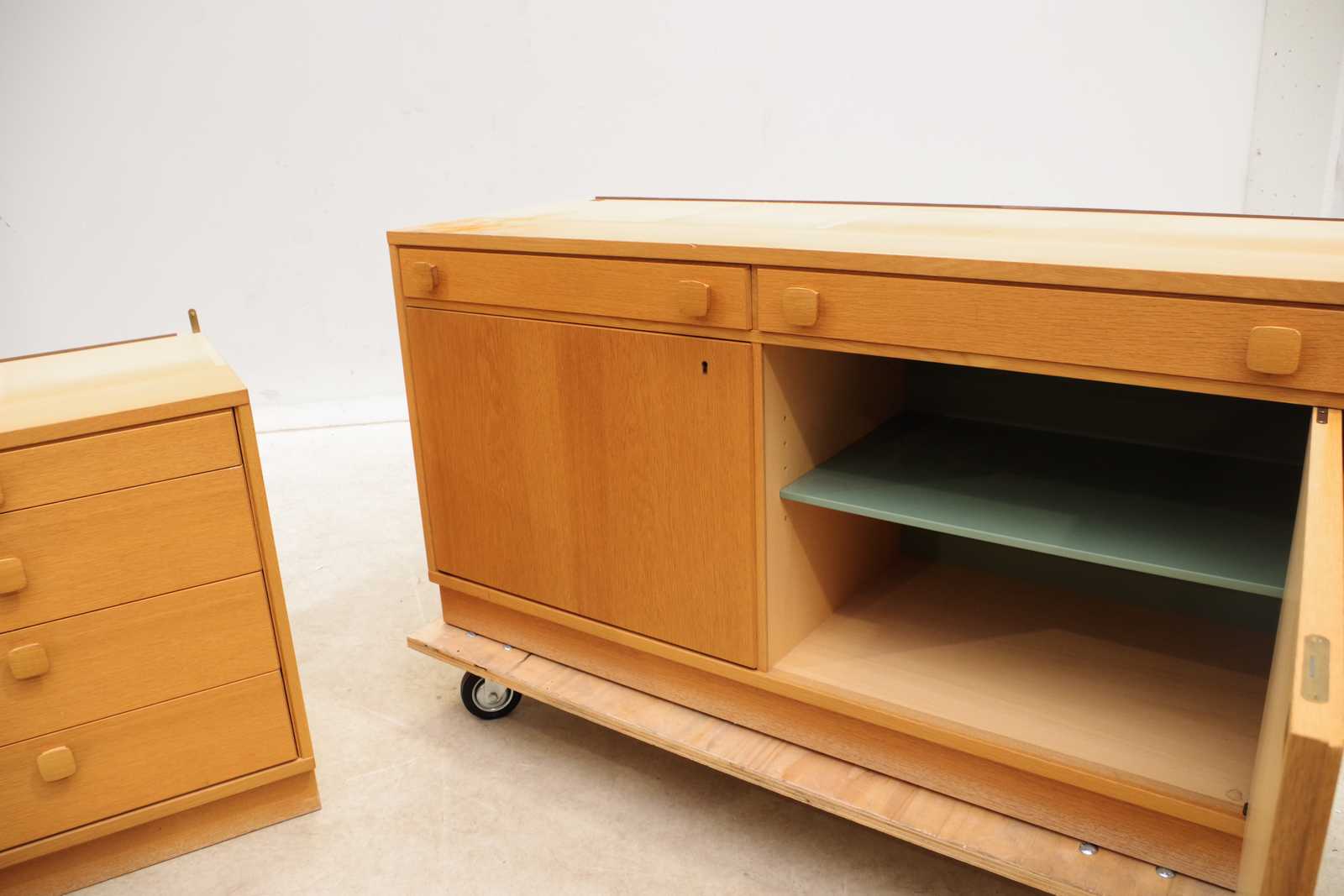 Bilder SKÅP 2 delar, ek, Ulferts Tibro, 1900-talets andra hälft. H:64x 120x 43cm. bruksslitage, märken.