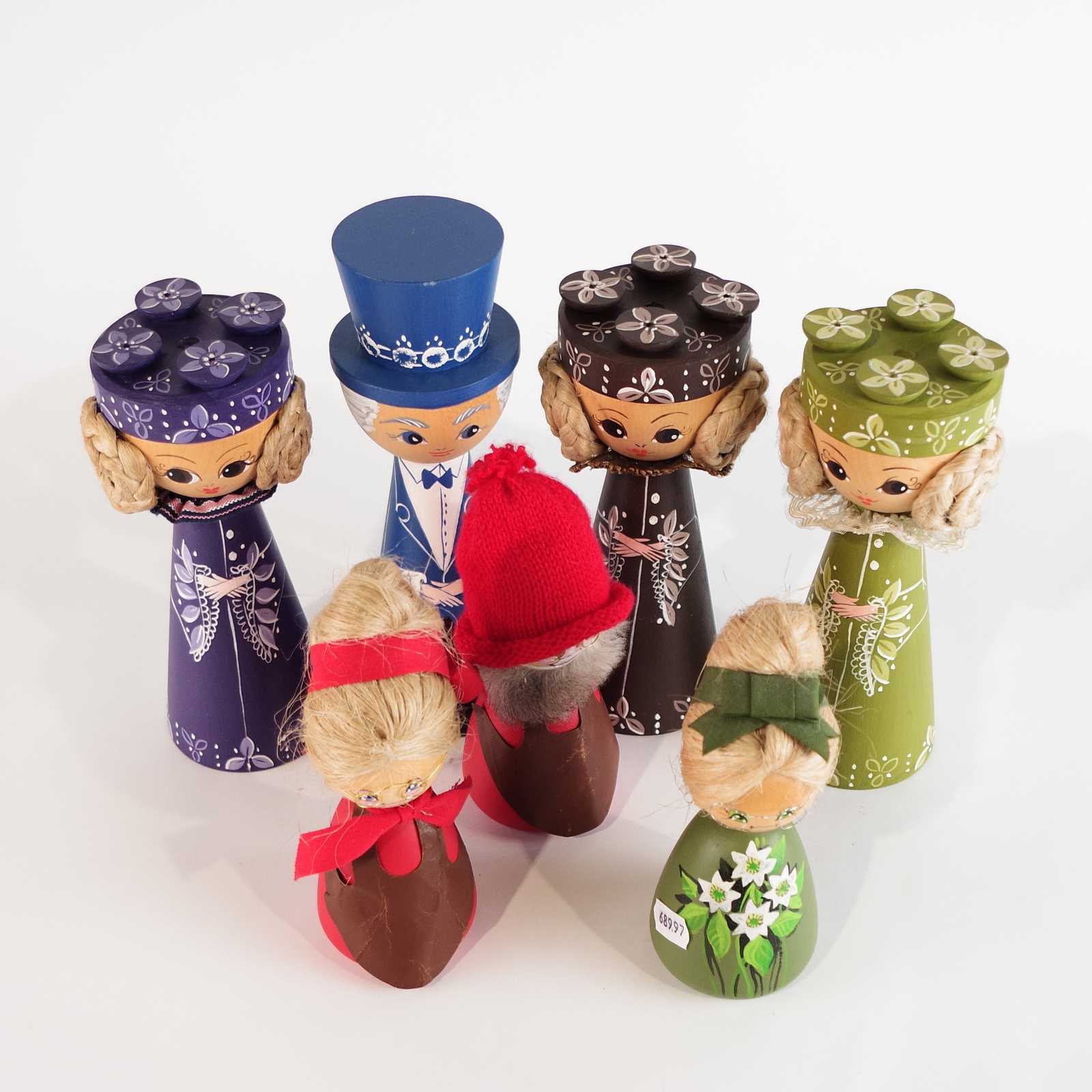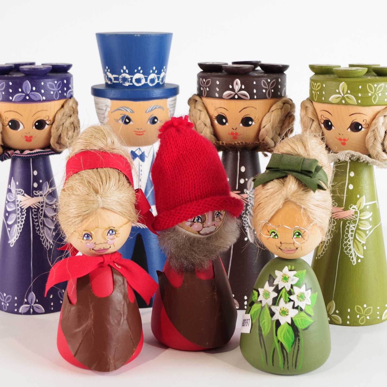 Bilder Parti TRÄDOCKOR bl.a. Barbro Stjärnberg. H:19cm största.
