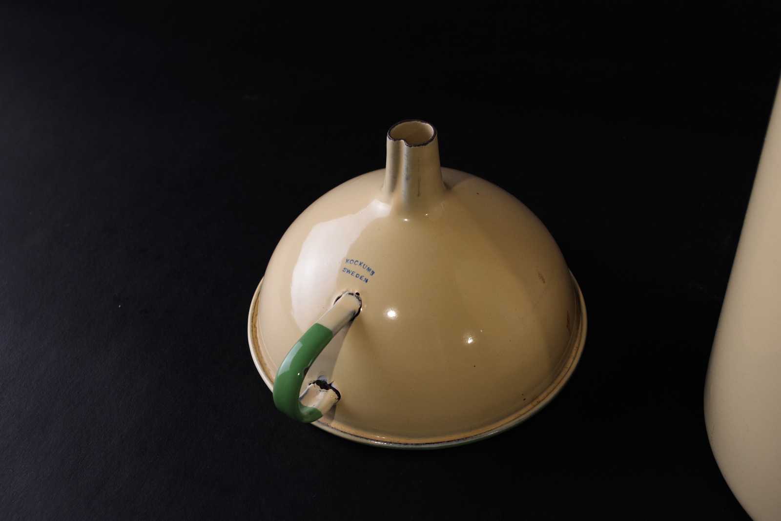 Bilder MJÖLKFLASKA & TRATT Kockums, emaljerade. H:28cm största totalt.