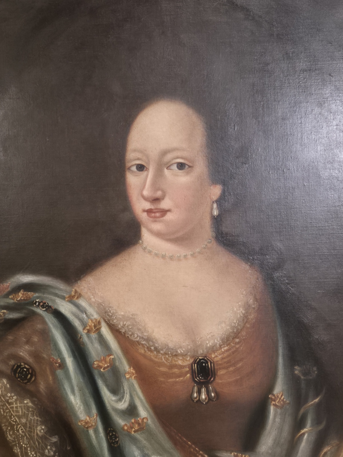 Porträtt av Drottning Hedvig Eleonora. Vacker målning i ståtlig ram. Visst mindre åldersslitage. Ramyttermått: 72cm x 92cm.