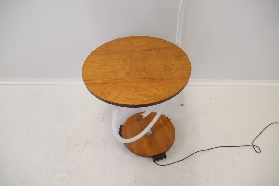 Bilder Golvlampa med bord, justerbar lampa, trÀ/metall/textil, 1900-talets mitt.