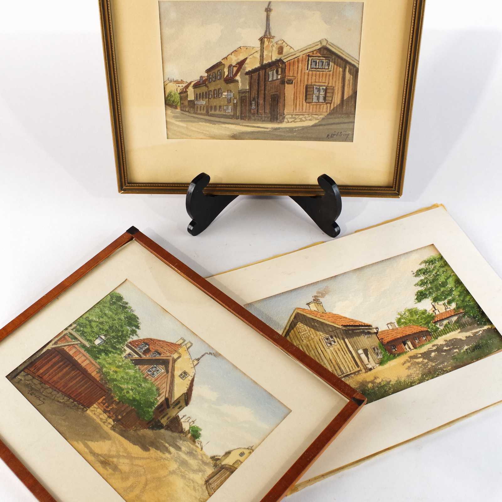 Bilder TAVLOR 3st Frans Lindströ, akvareller. 22x14cm.