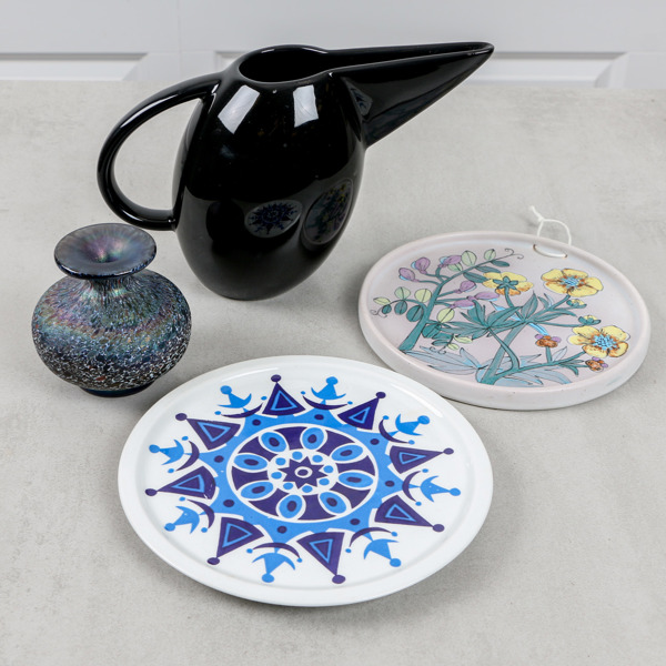 2 dlr Arabia, vas Bertil Vallien samt väggplakett okänd formgivare, Finland.