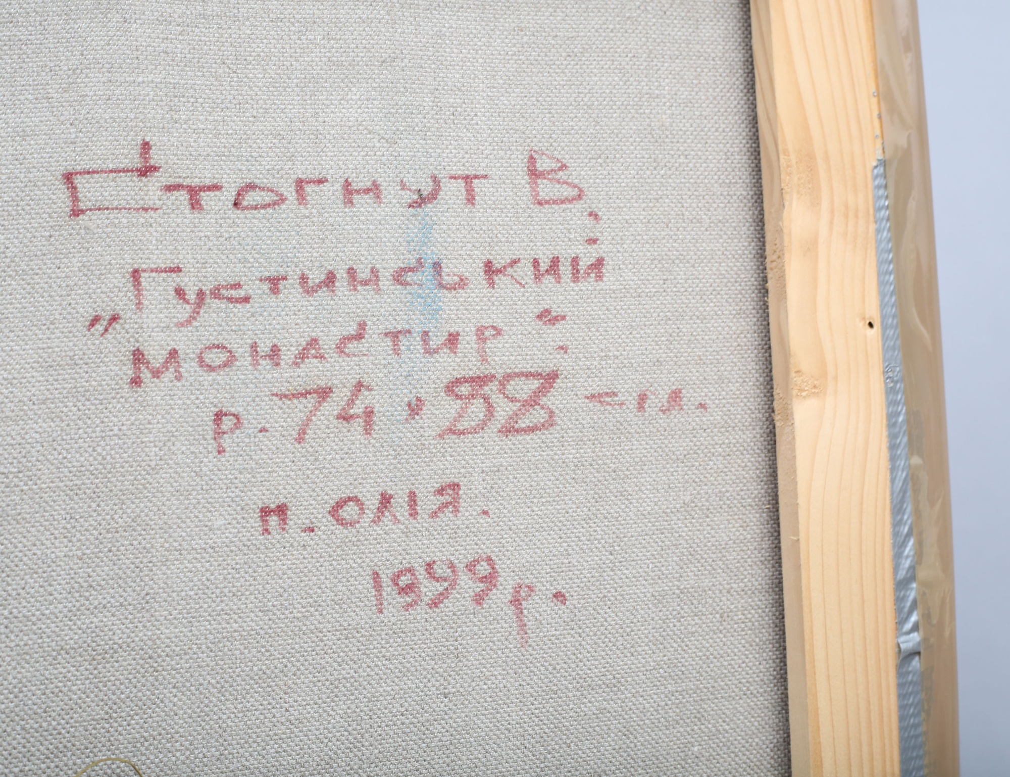 oljemålning på duk, "Gustynski klooster", signerad även atergo 1999, etikett, 71x85, rammått 81x95