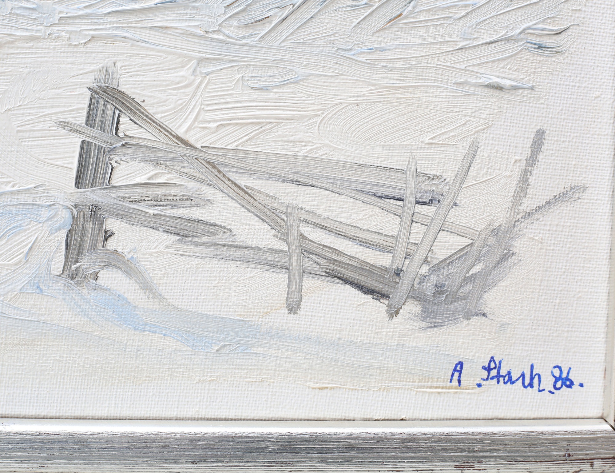 oljemålning på duk, "Mörk himmel", signerad -86, 25x33, rammått 29x37