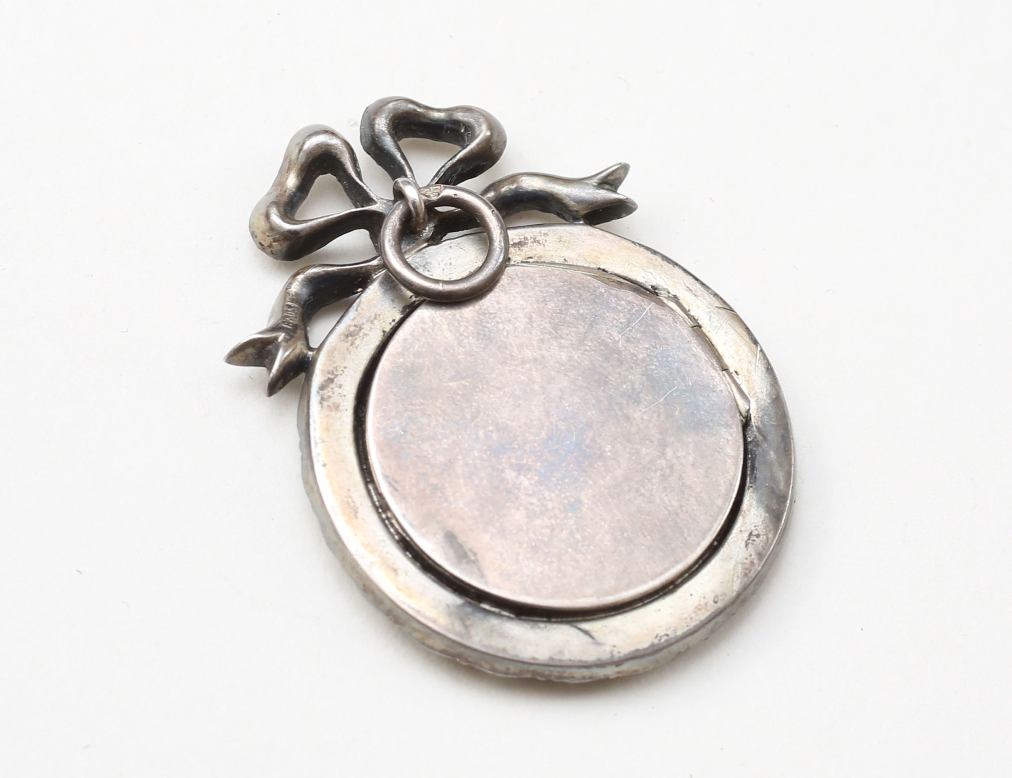 Louis XVI-stil tidigt 1900-tal, rundel med krönande rosett, infattad paste, glas framför ram, stämplad 830S samt svensk importstämpel, höjd5,5, fotots diameter 2,6