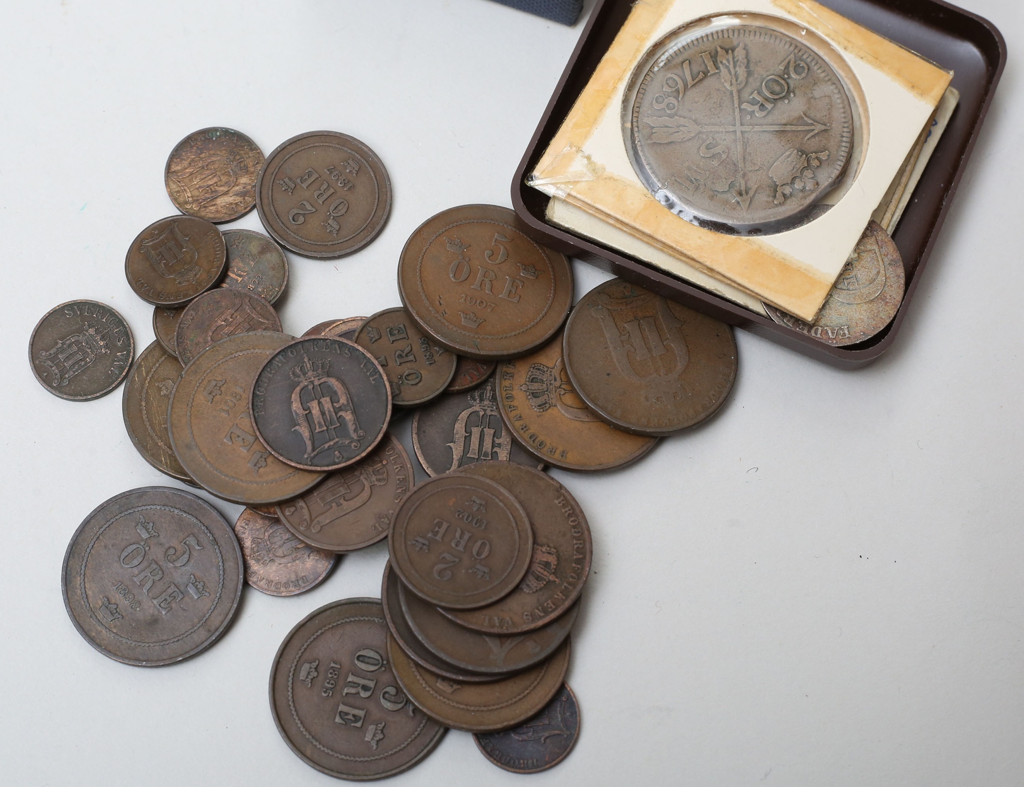 Oscar II olika valörer, äldre mynt 1700-tal, bla. Gustav III 1/12 riksdaler 1778, silvervikt (800/1000) ca. 86 gram