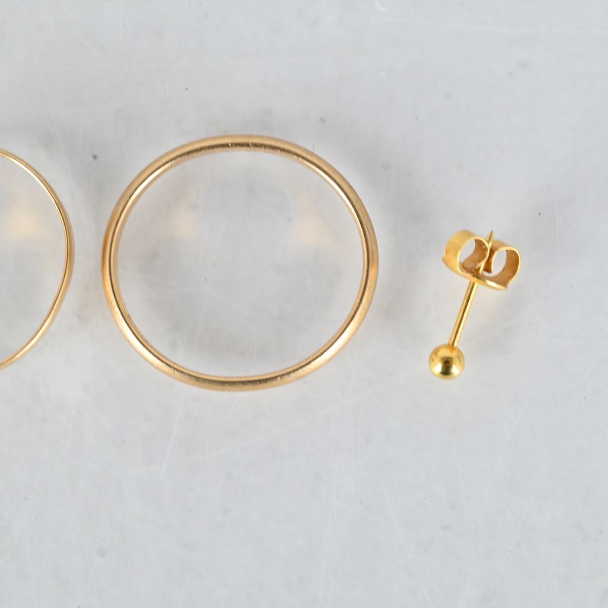 3 ringar, 1 örhänge, Guld 18K