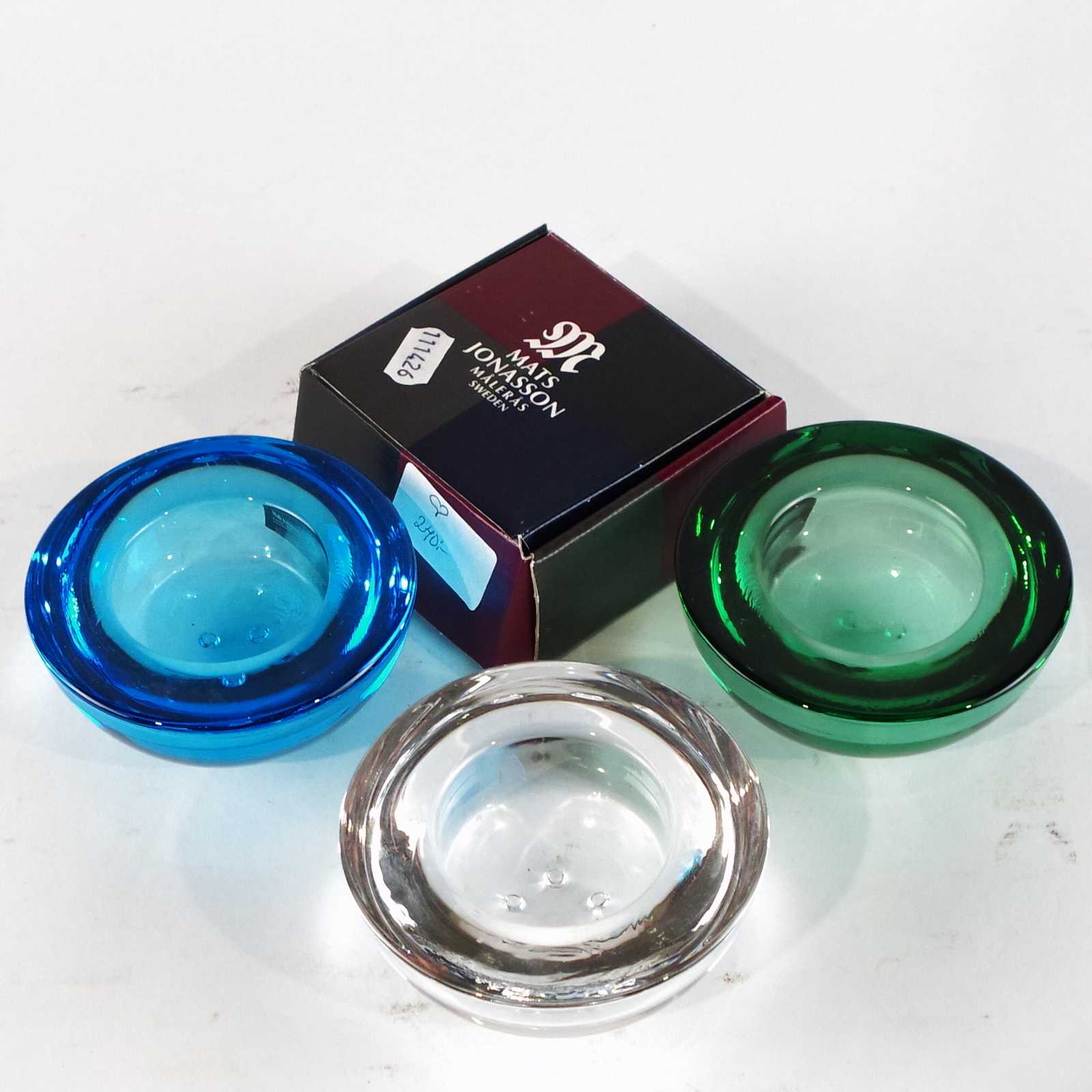 Bilder LJUSLYKTOR 3st & GLASKULPTUR Mats Jonasson. D:9cm största.