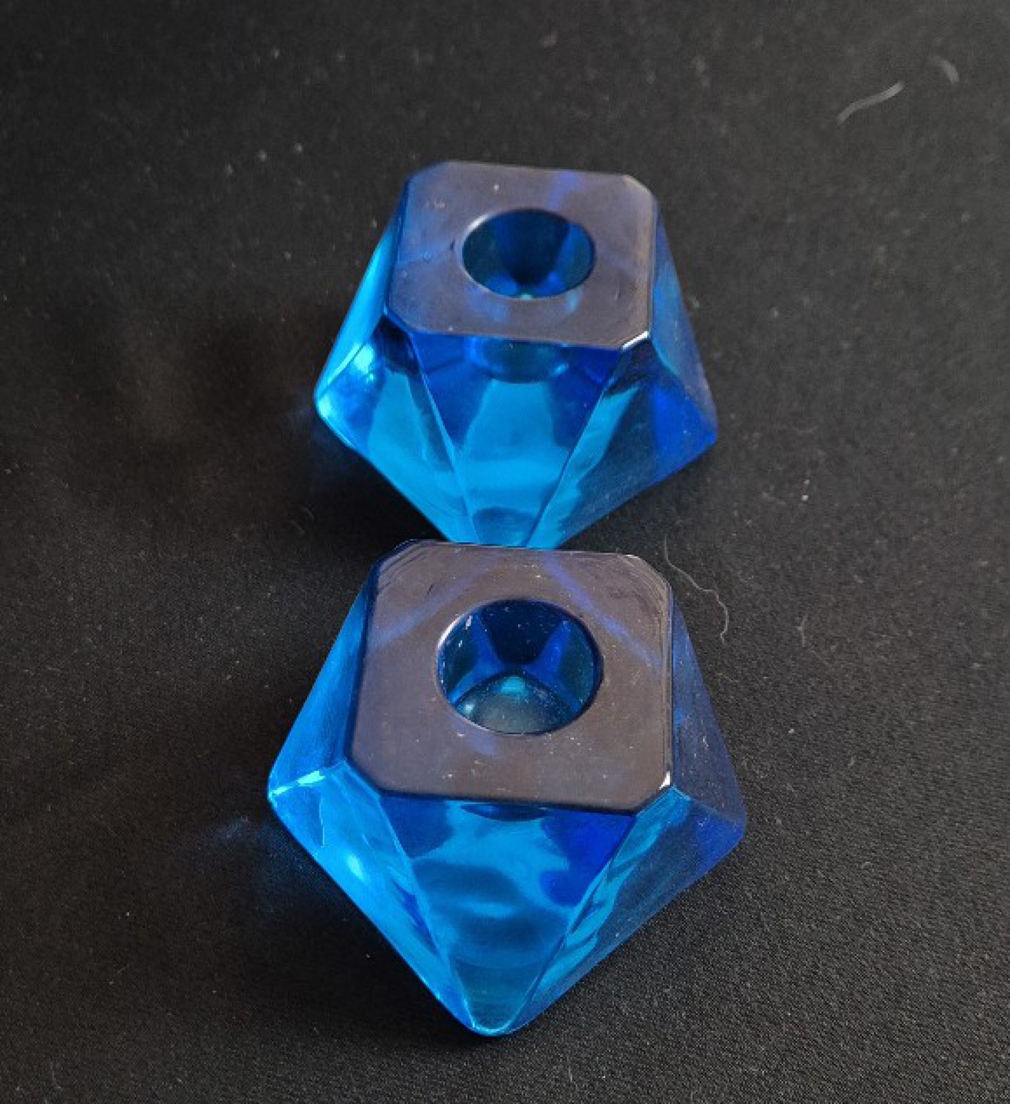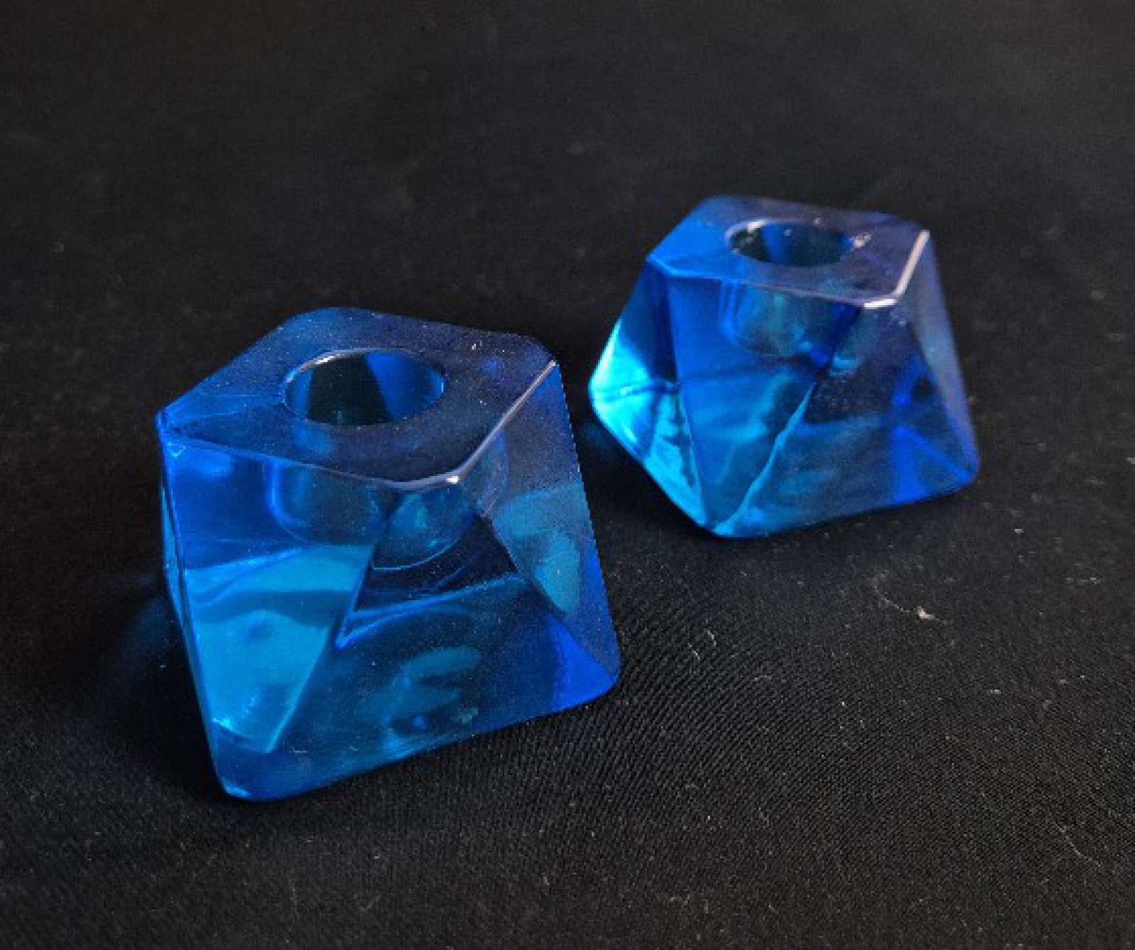 Auktioner Fashion & Vintage BLÅ LJUSSTAKAR I GLAS, Nybro glasbruk, lampa teak med blå glasfot ca 25 cm utan lampa