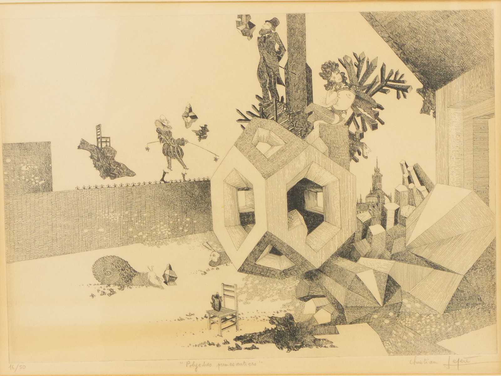 Auktioner Konst & Grafik TAVLA Oidentifierad konstnär, etsning, signerad & numrerad 16/50. 57x48cm (ram behöver spikas om)