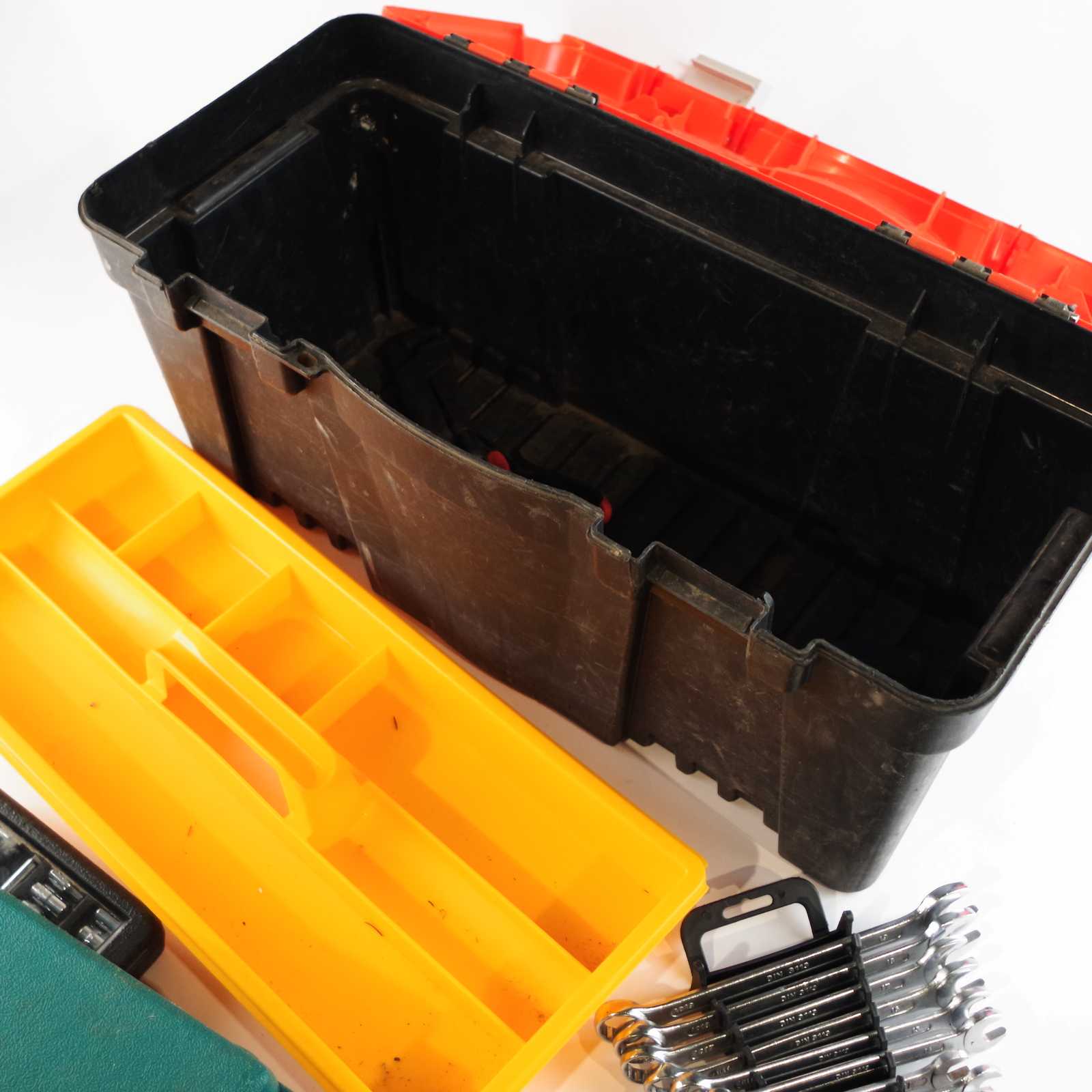 Bilder VERKTYGSVÄSKA med innehåll. B:60cm totalt.