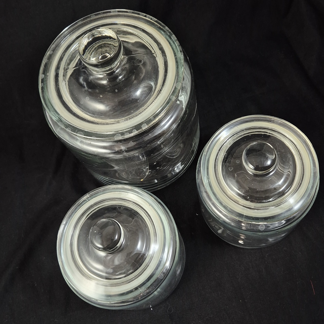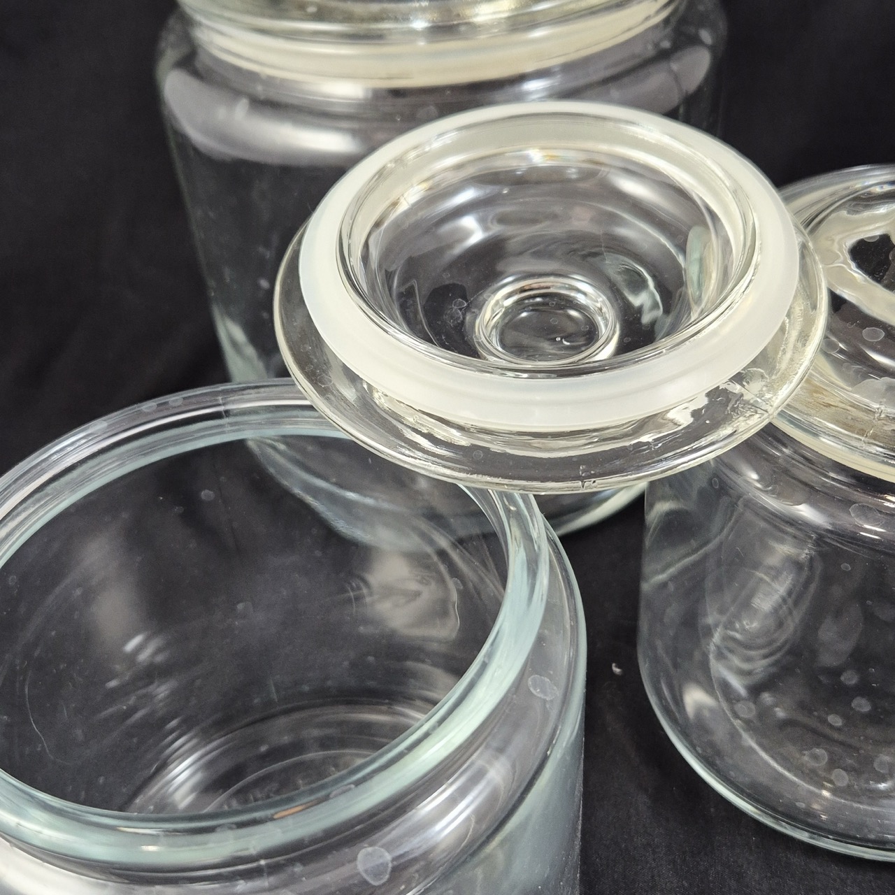 ´Glasburkar med gummitätat lock. 3st . Högsta H. 21cm med knopp