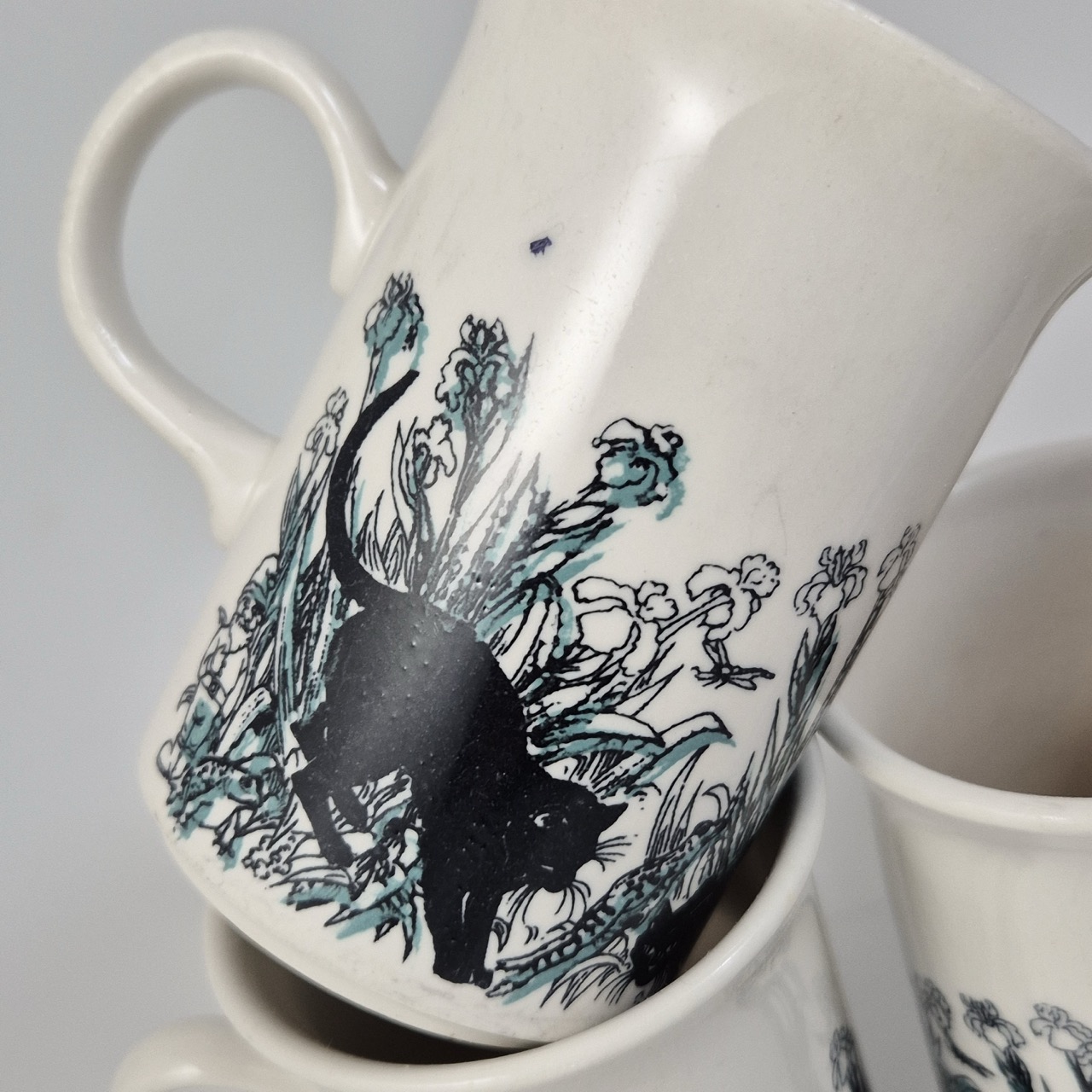 5st Kattmuggar H.10.5cm. Finns missfärgningar inuti