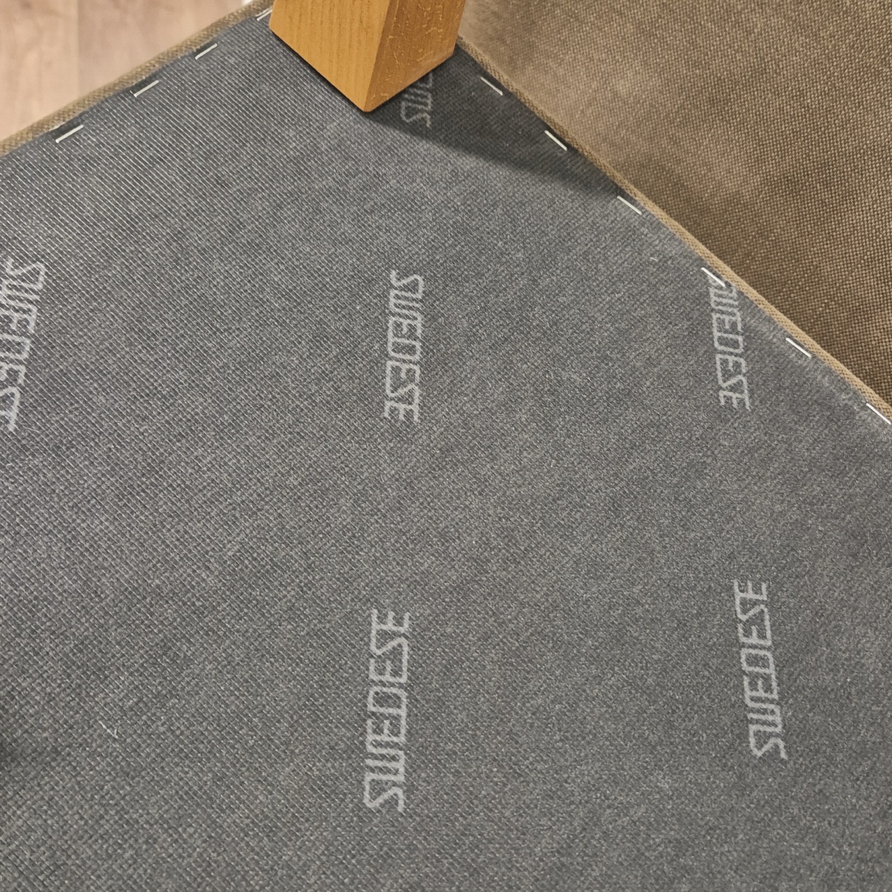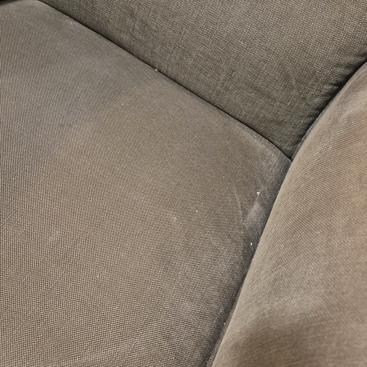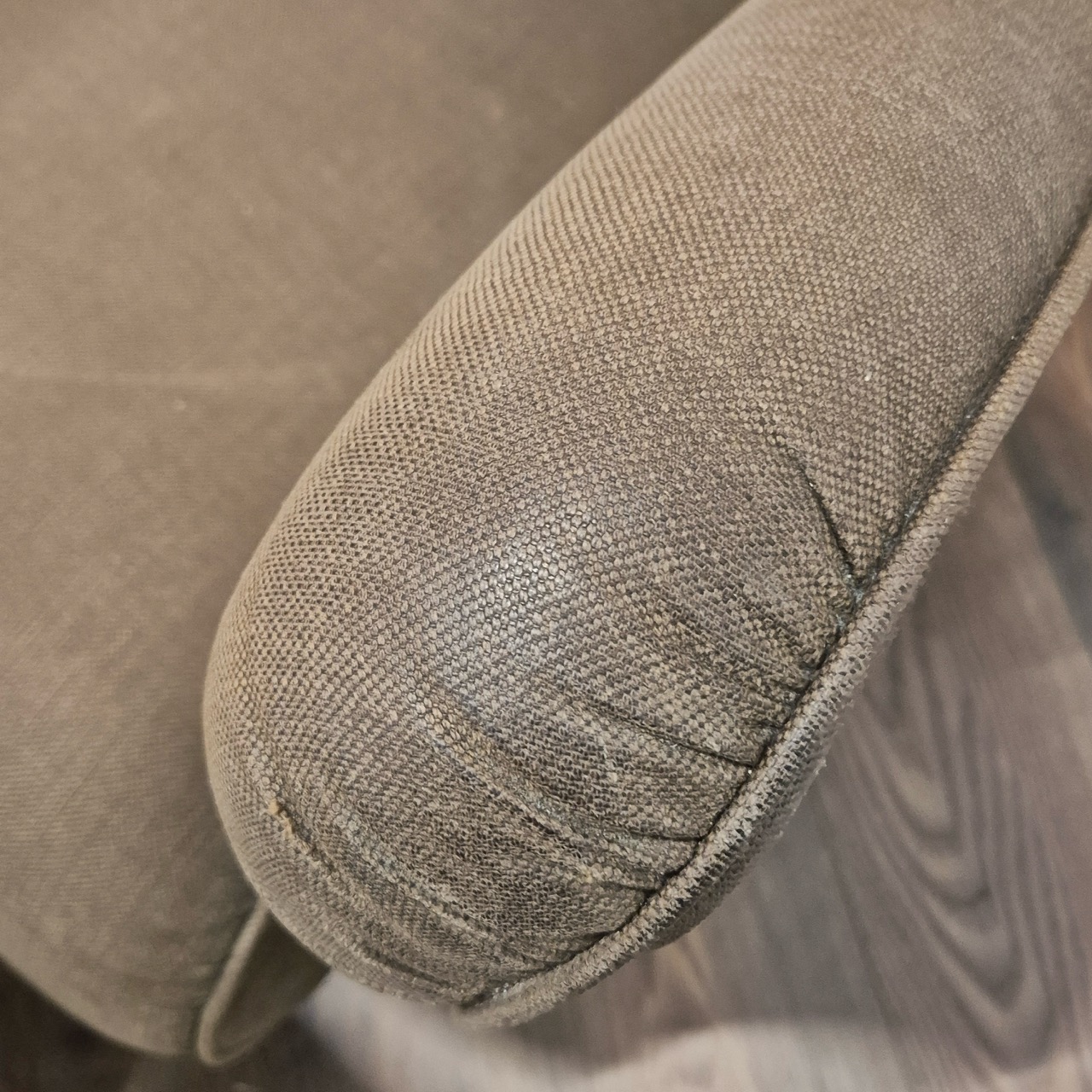 Fåtölj med fotpall Swedese i brunt. Fläckar finns, slitage på armstöd