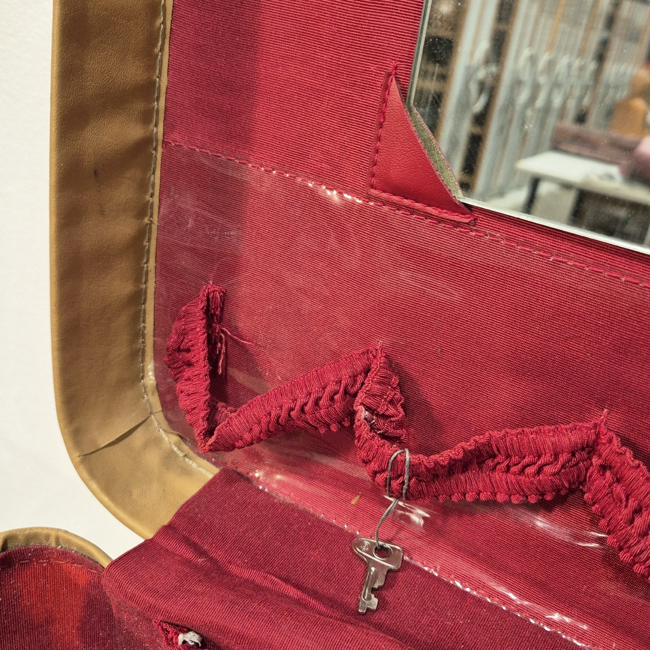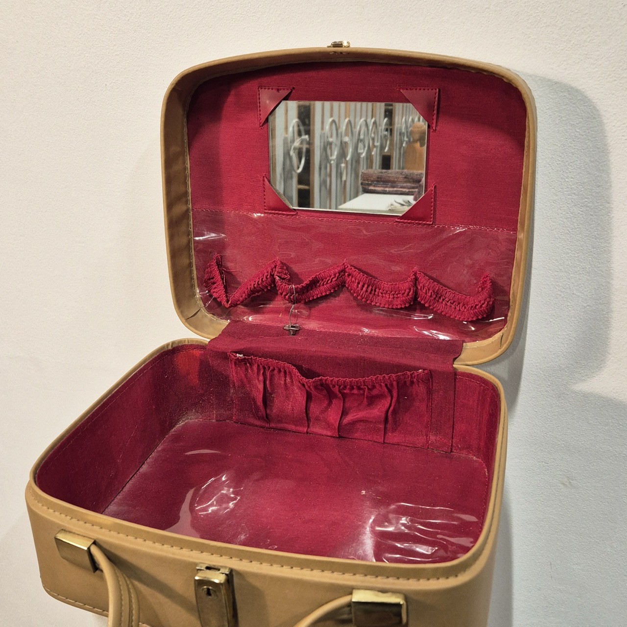 Retro sminkväska som man får plats med grejer i . Nyckeln finns . Mindre skavanker. 28x33x13cm