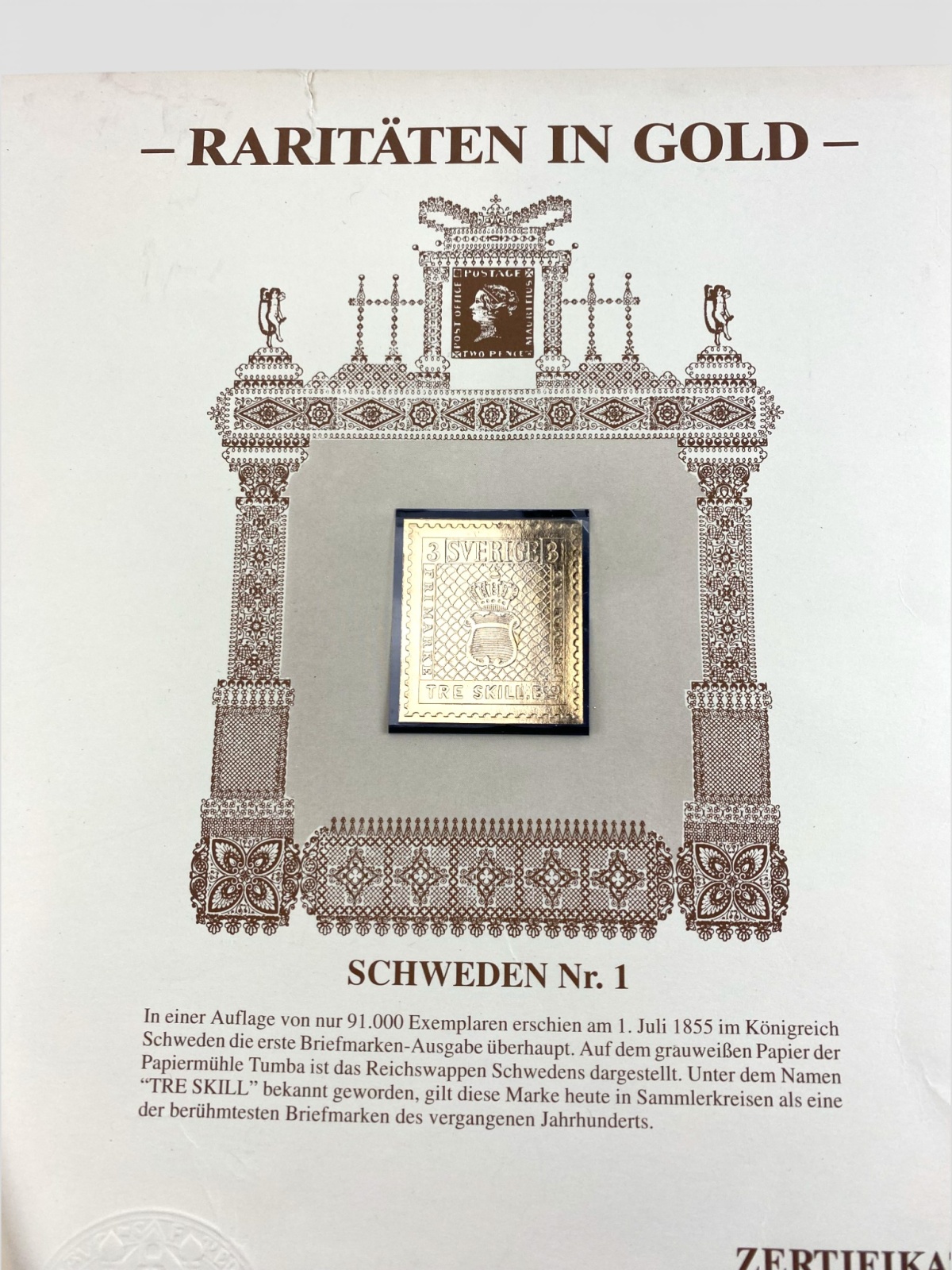 Bilder Litteratur, Certifikat 3 skilling banco