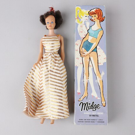 Bilder Barbiedockor, 1960-tal + garderob. 30x13 H=40