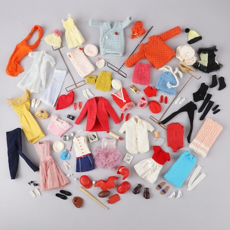 Barbiedockor, 1960-tal + garderob. 30x13 H=40