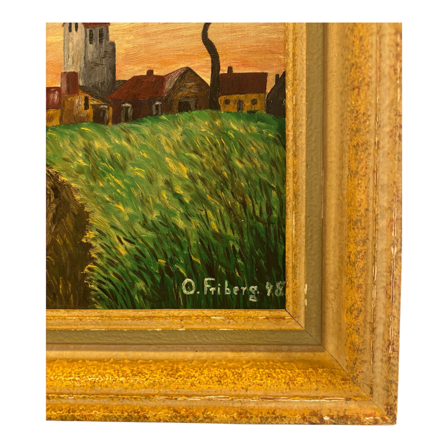 O. Friberg – ”Skånska landskap med afrikanska hyddor”, oljemålning 1948