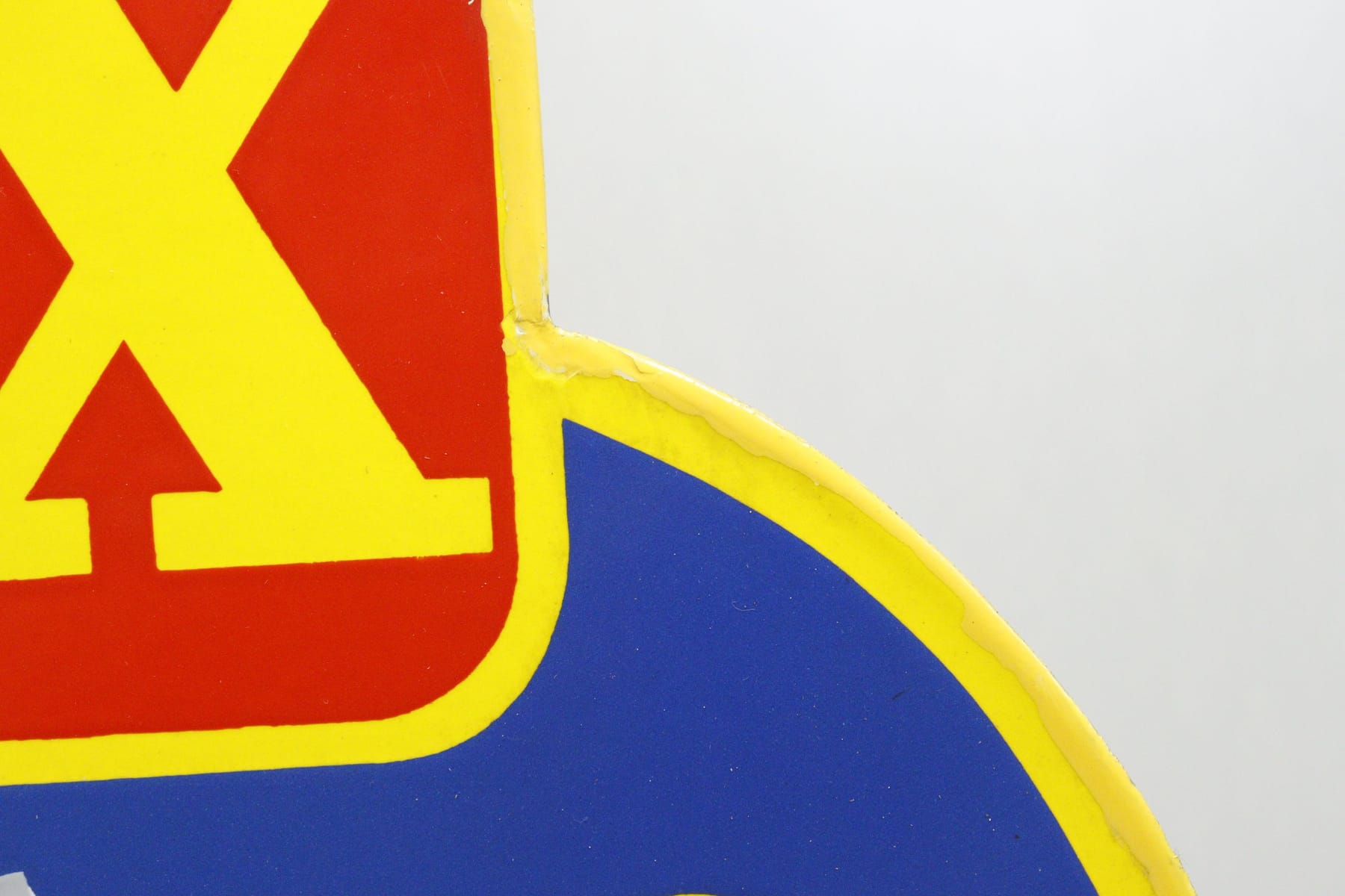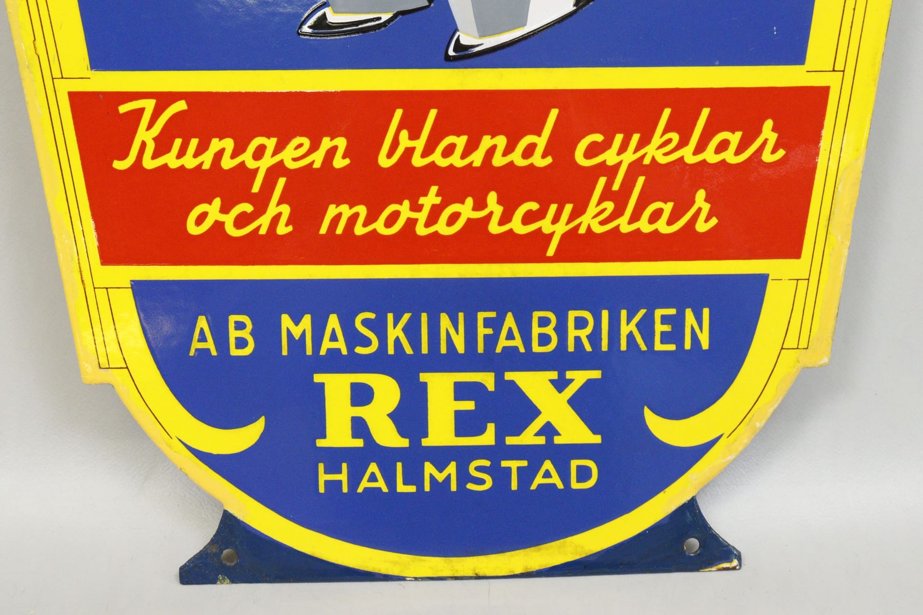 Reklamskylt, emaljerad, Rex Kungen bland cyklar och motorcyklar
