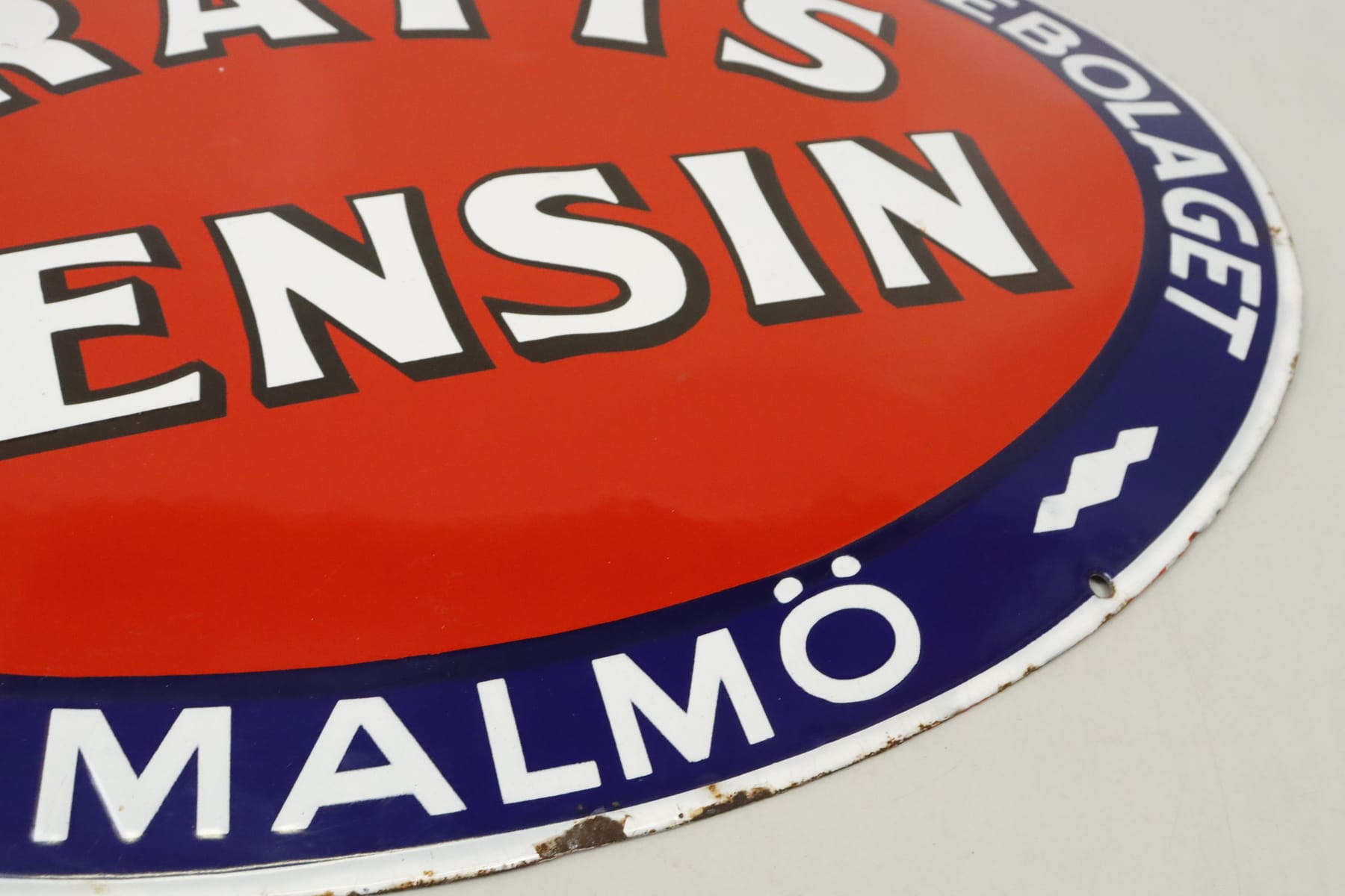 Plåtskylt, "Pratts bensin, MALMÖ", emaljerad