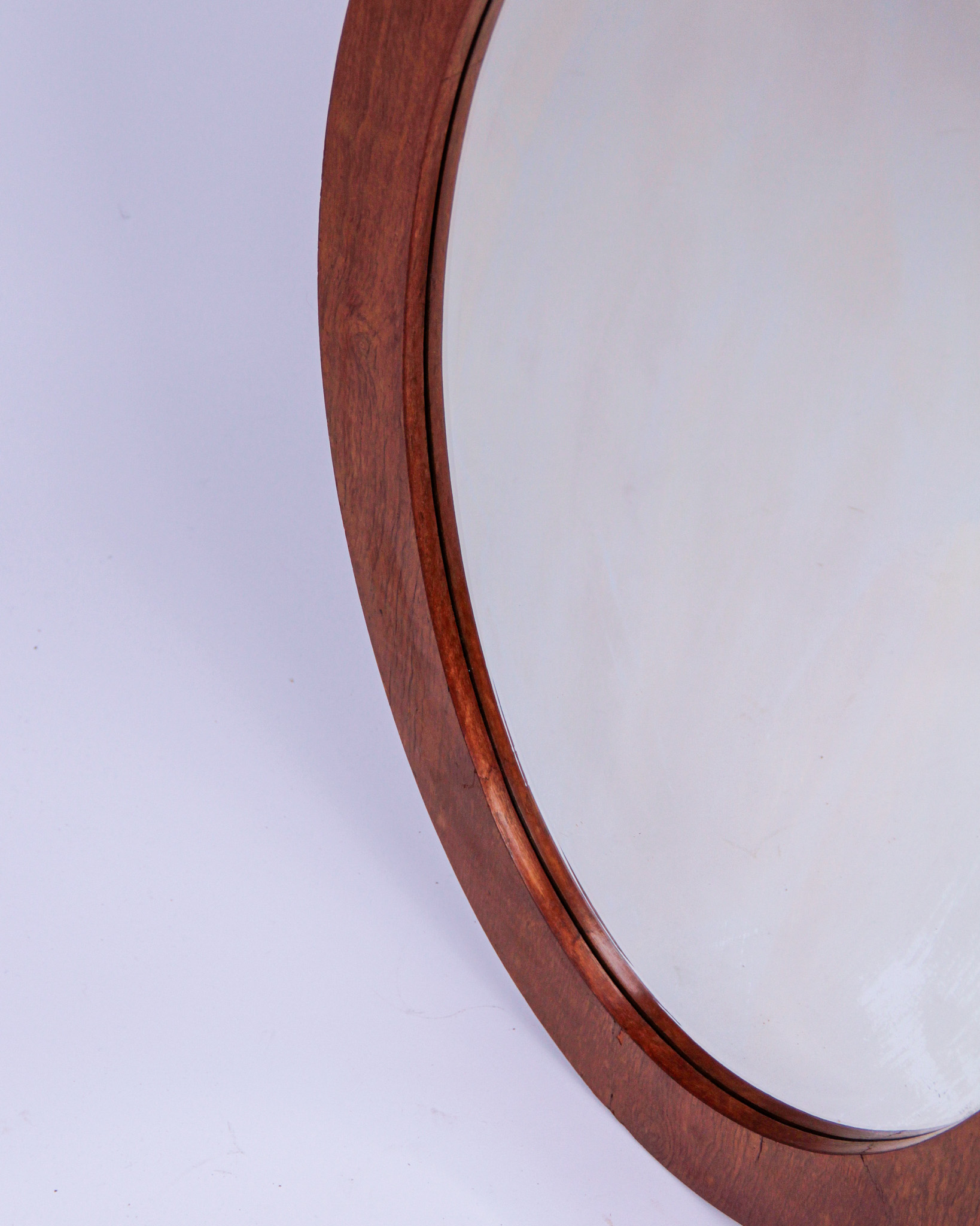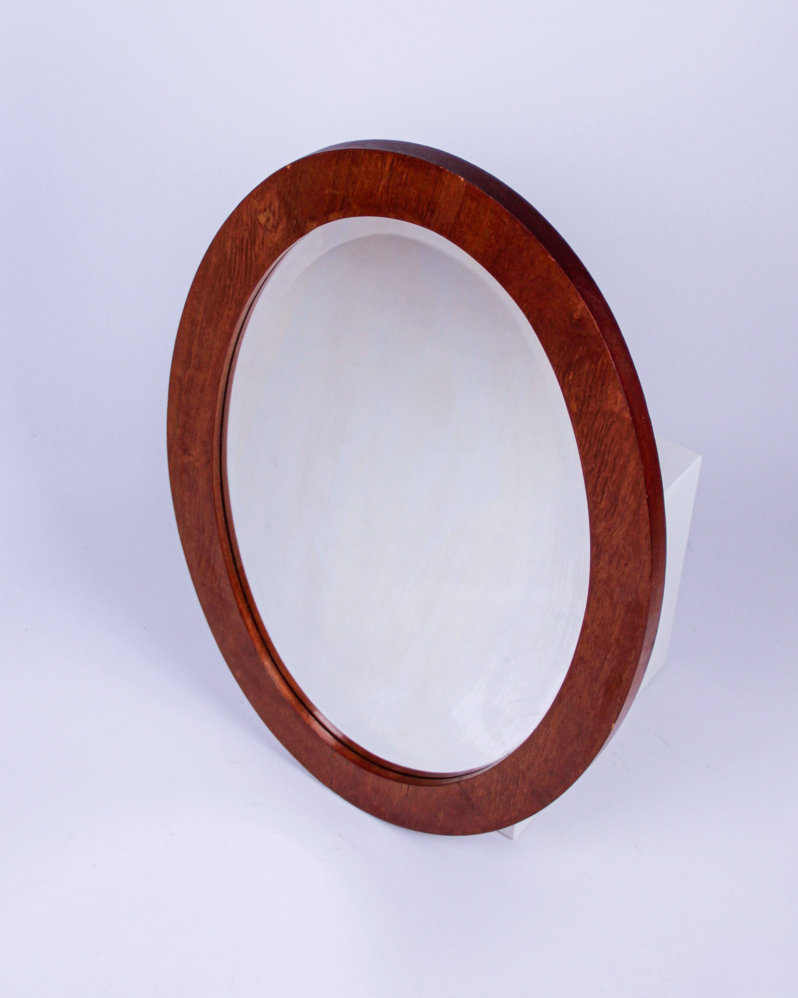 Spegel, oval, spegelglas och betsat trä, 1900-talet